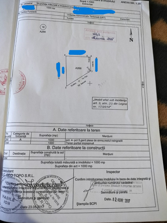 Suprafata teren 1000mp cu deschidere de 35 ml la strada Isaccei.